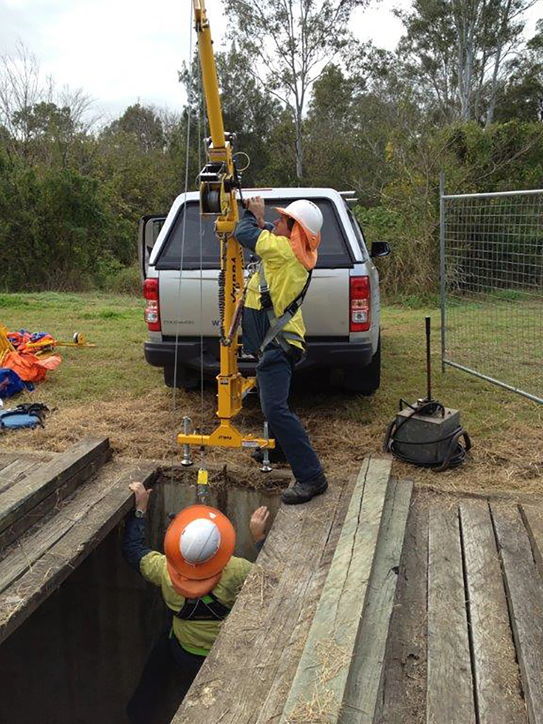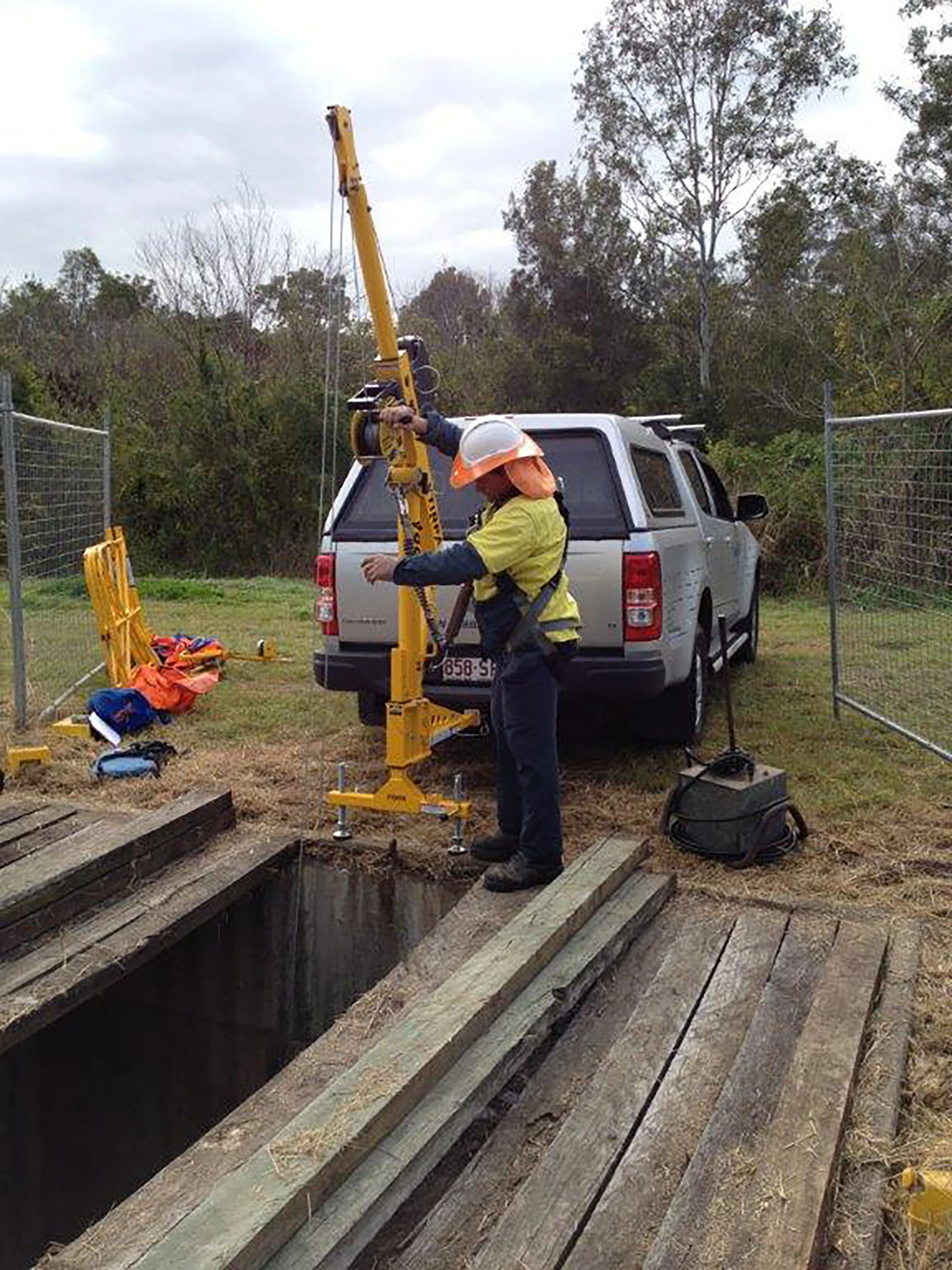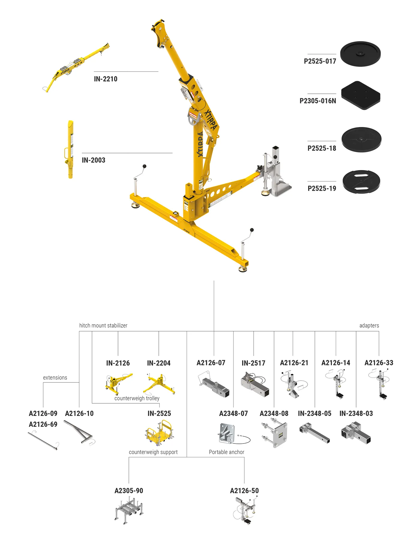 The IN-8007 system consists of an IN-2003 mast, IN-2210 davit arm, and T-stabilizer IN-2204. The system can be installed as both a mobile and fixed anchorage point. Thanks to a broad range of accessories, the T-stabilizer can be fixed to a trailer hitch (50 mm), a mobile counterweight, or to a mezzanine using an adjustable C-clamp. This offers an innovative and flexible rescue solution for vertical entry into shafts, pits, trenches, and manholes.