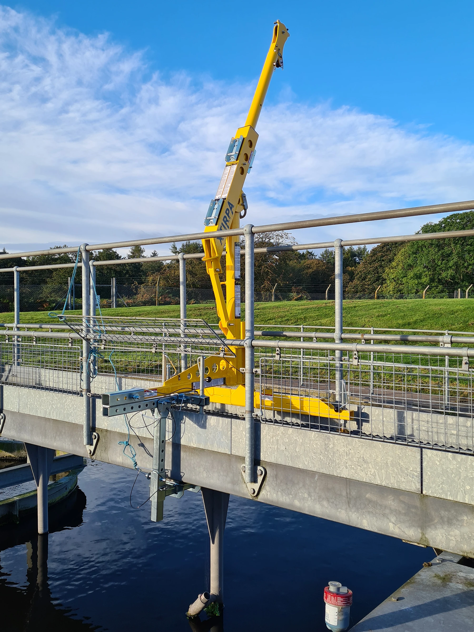 The system can be installed in just a few minutes without tools: the mast is placed onto the stabilizer, and the davit arm is mounted onto the mast using safety pins.