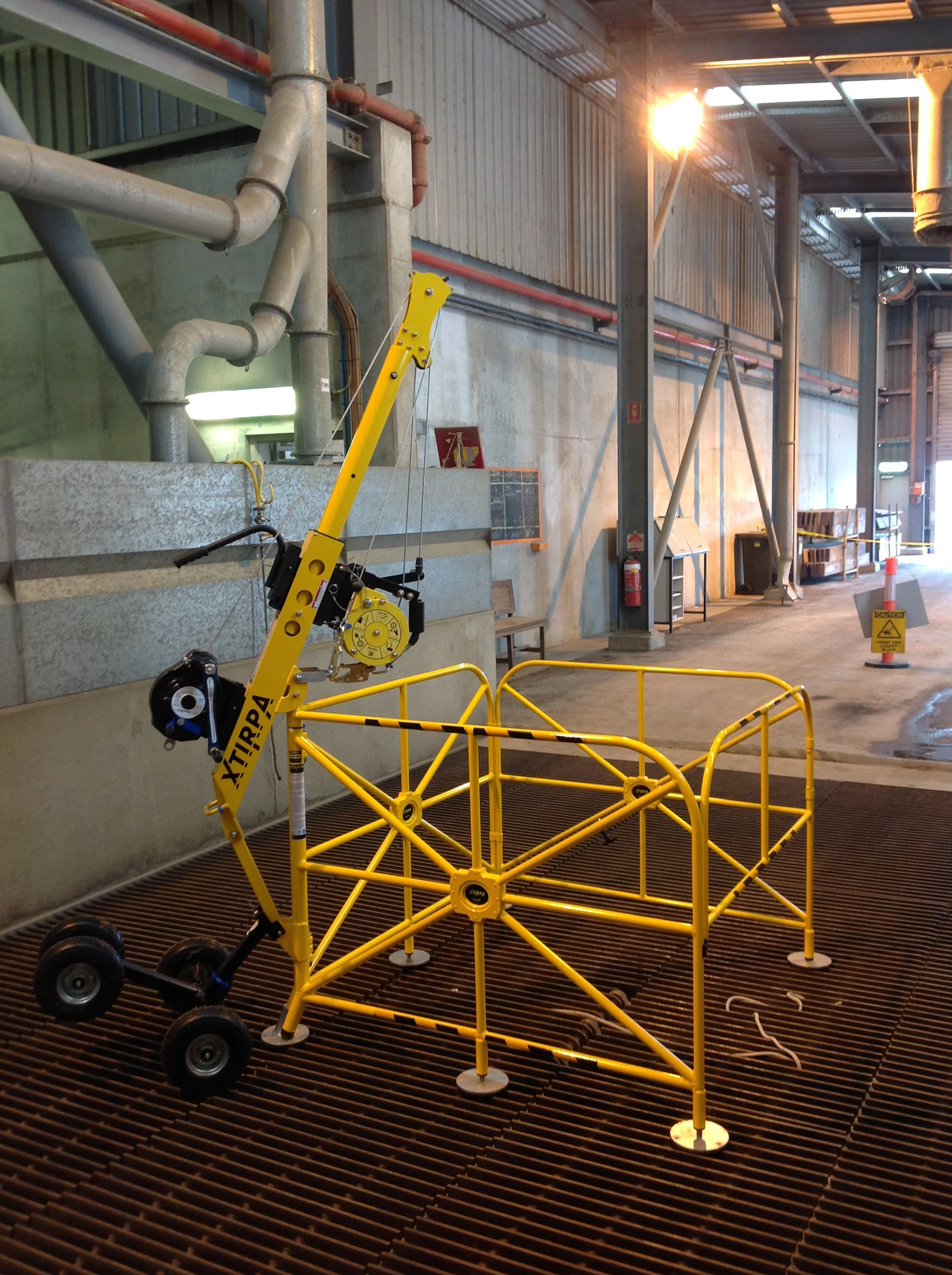 The IN-8011 is a large mobile guardrail to which a davit arm with a 610 mm reach can be attached. This access system is specially designed to protect users working above vertical openings (e.g., manholes, hatches). The guardrail provides collective protection for safety personnel or other bystanders.