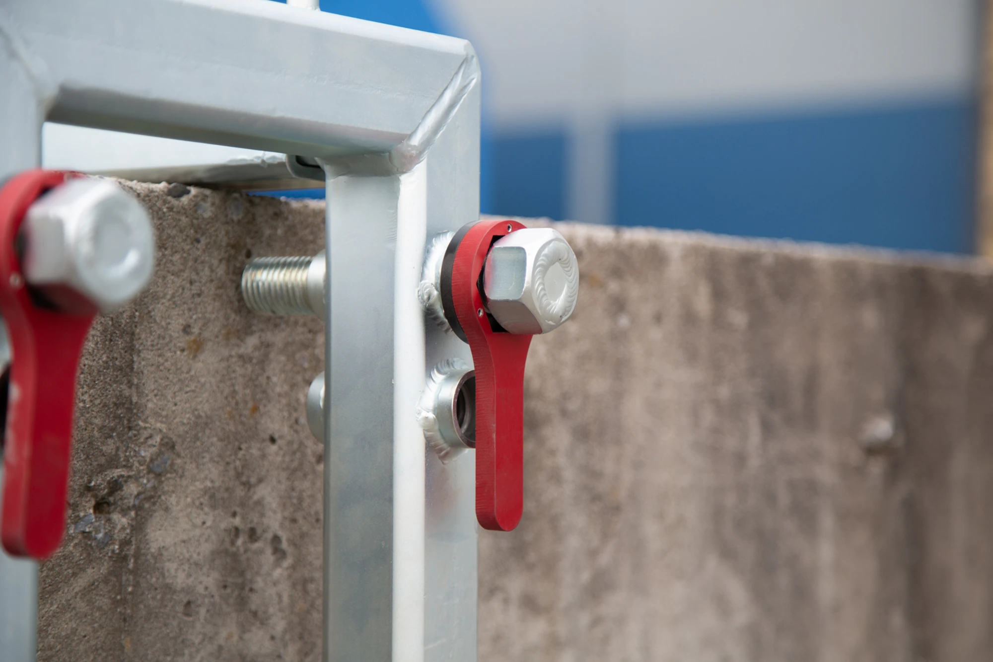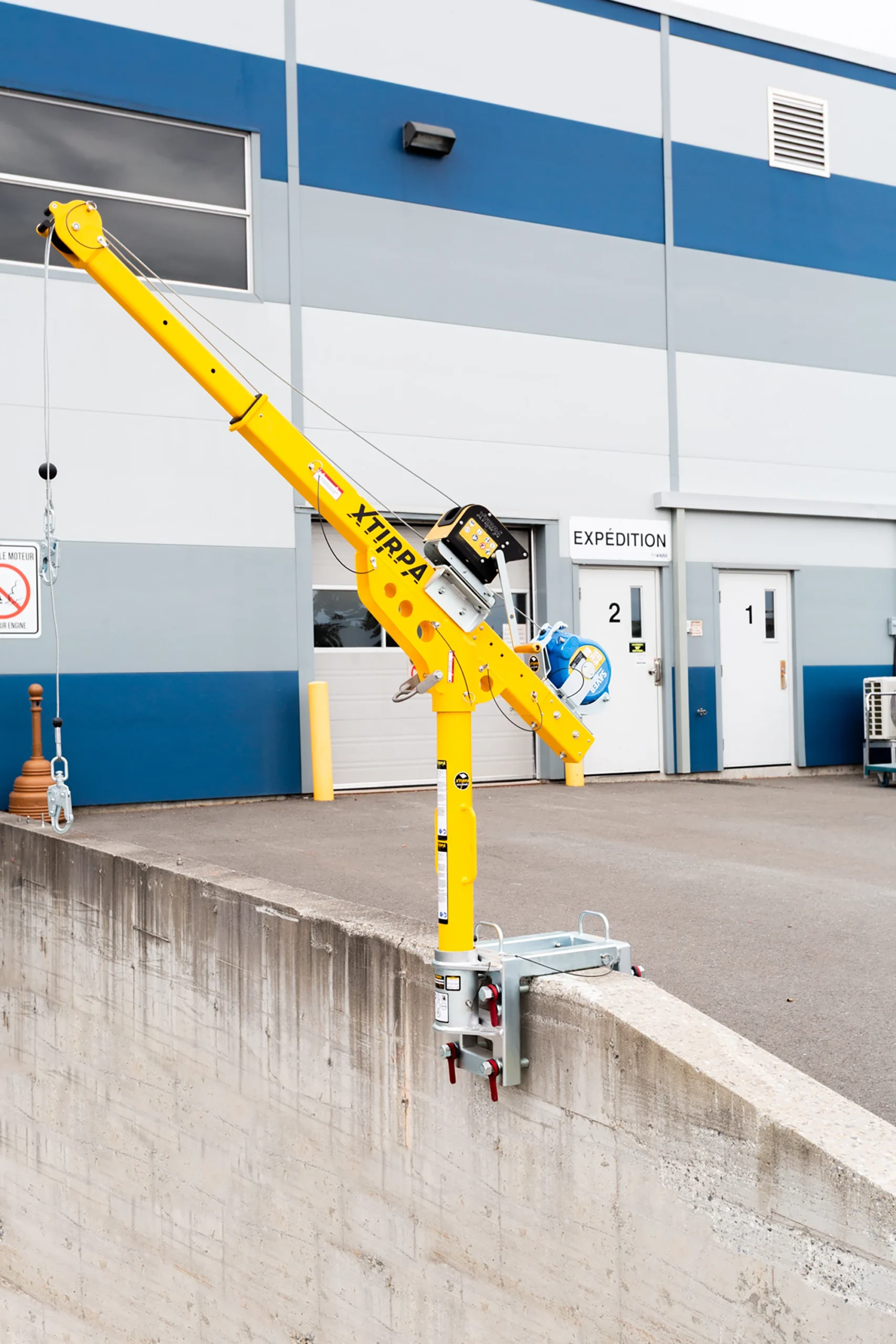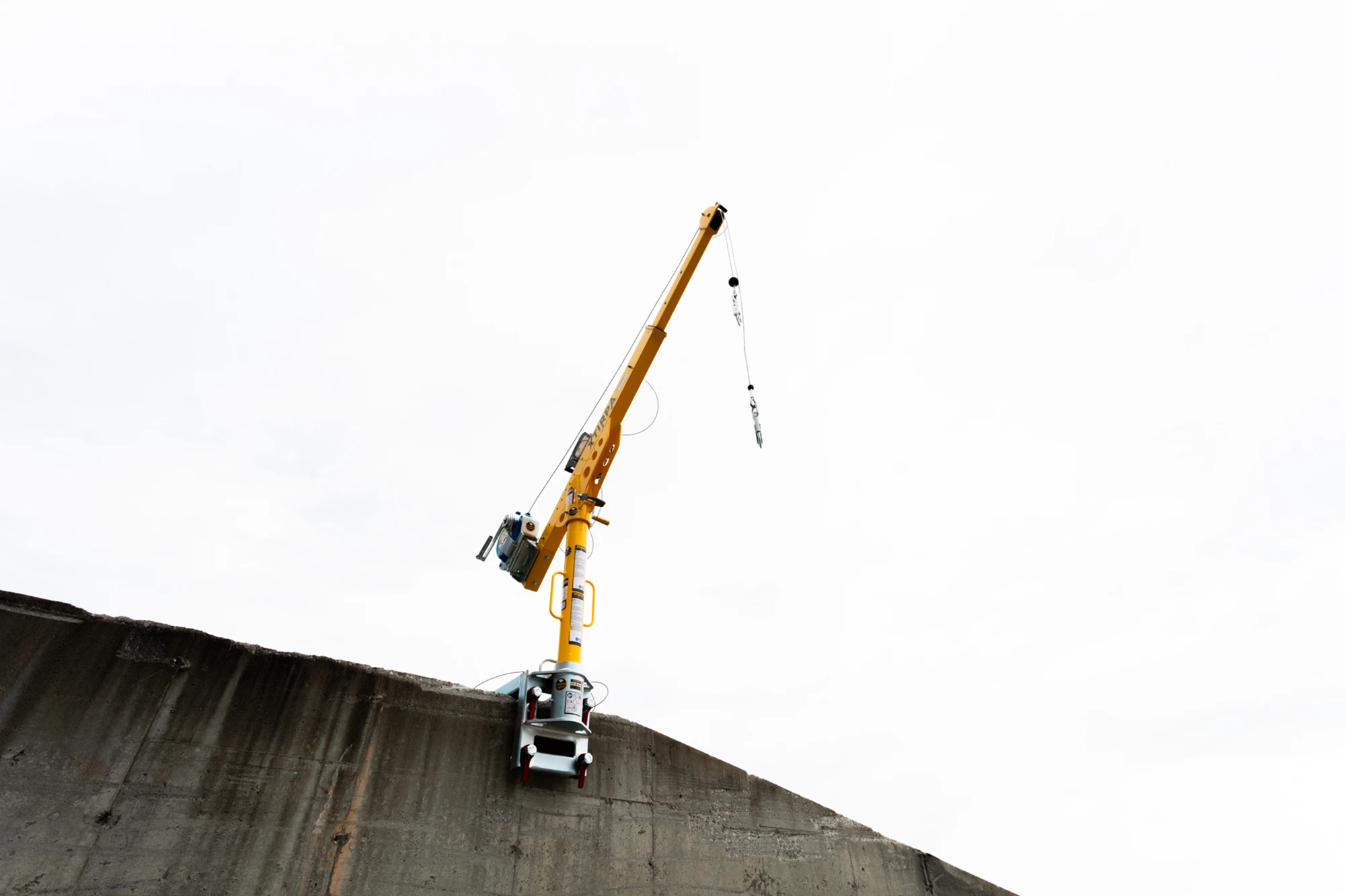 Its clamping mechanism allows the system to be securely fixed to structural walls, sheet piles, or trench shoring panels, making it well suited for temporary confined space operations.