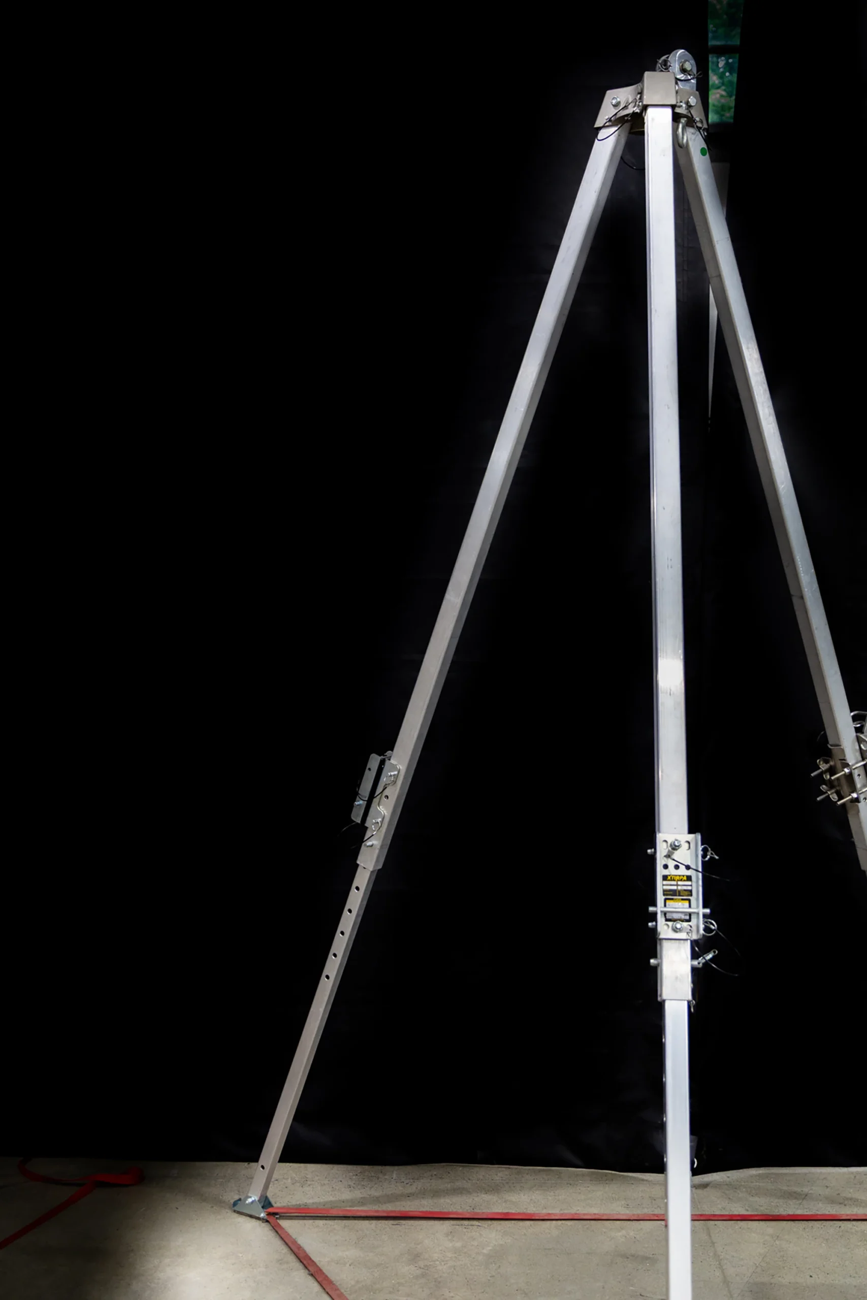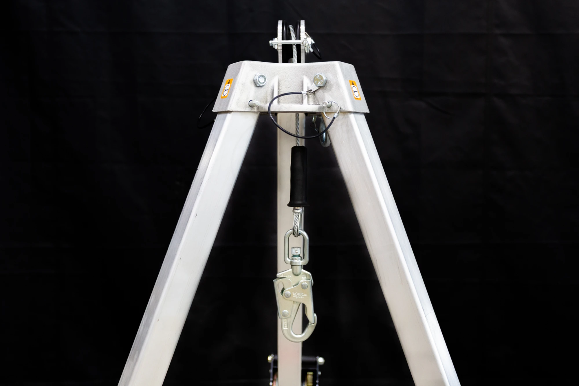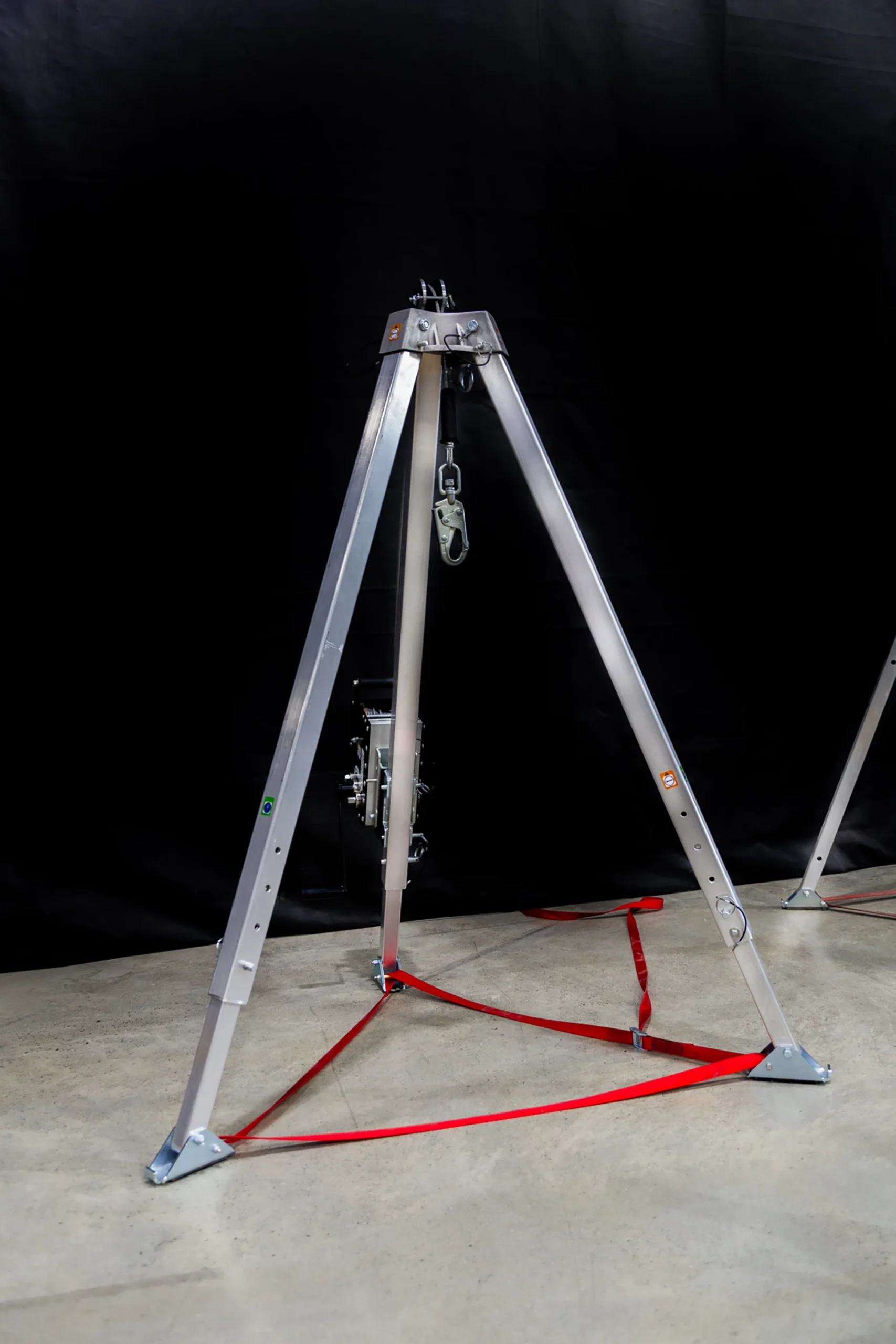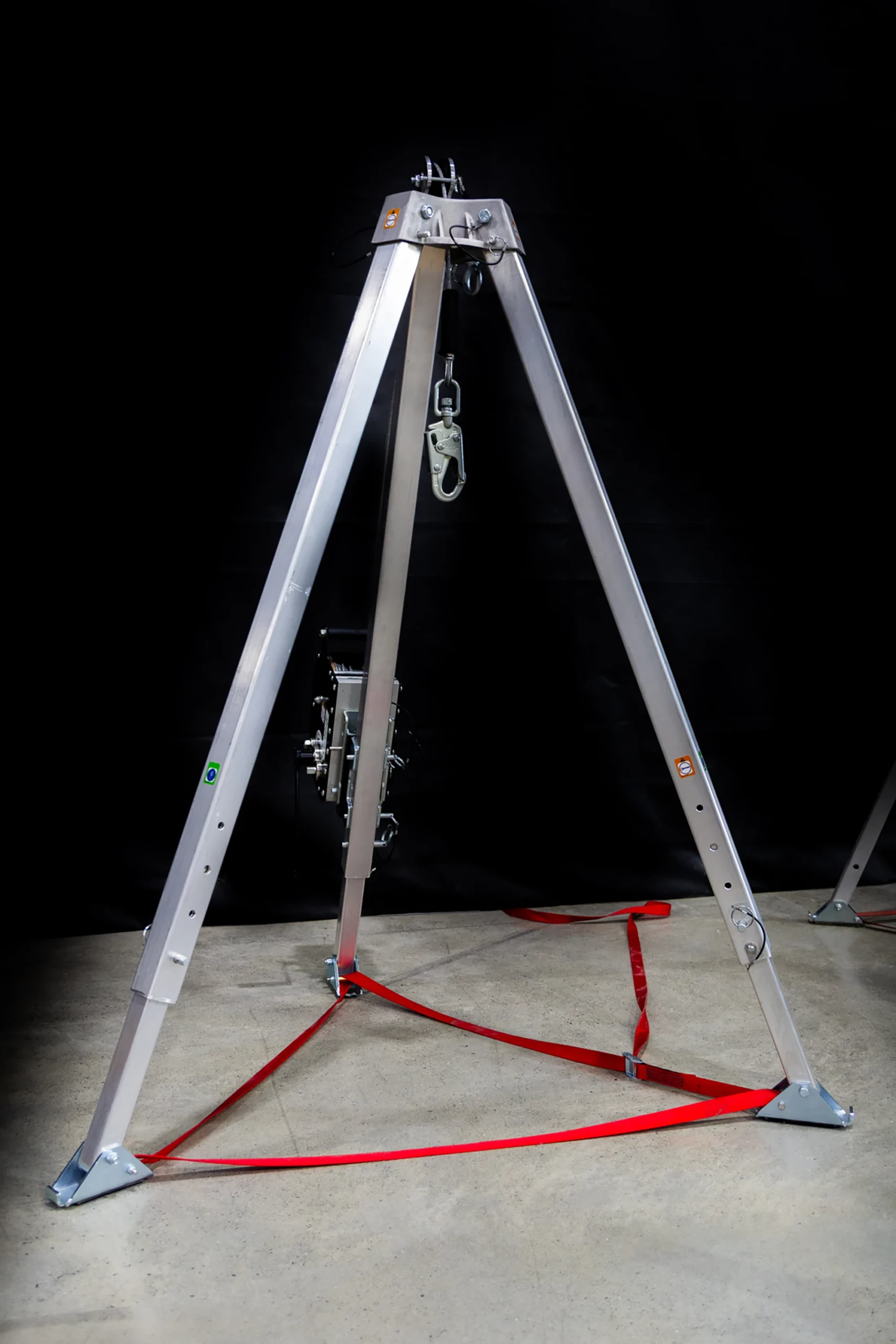 Designed for use over vertical access points such as manholes, vaults, and similar confined spaces, the tripod provides a stable and portable anchoring solution where no permanent overhead structure is available. Its aluminum construction ensures easy handling, transport, and efficient on-site deployment, while delivering the strength required for safety-critical applications.